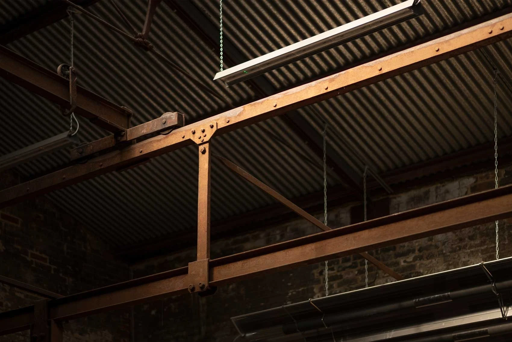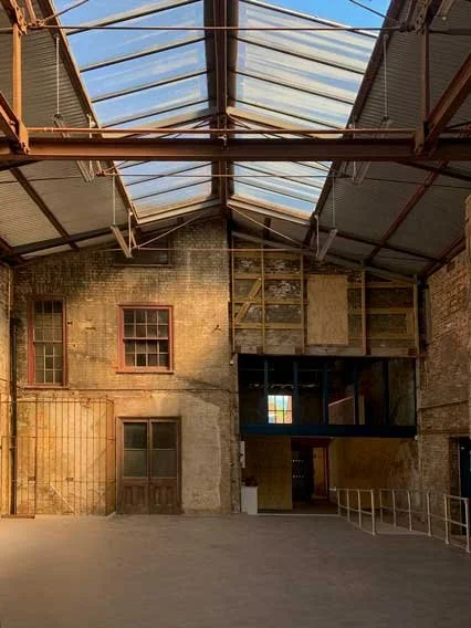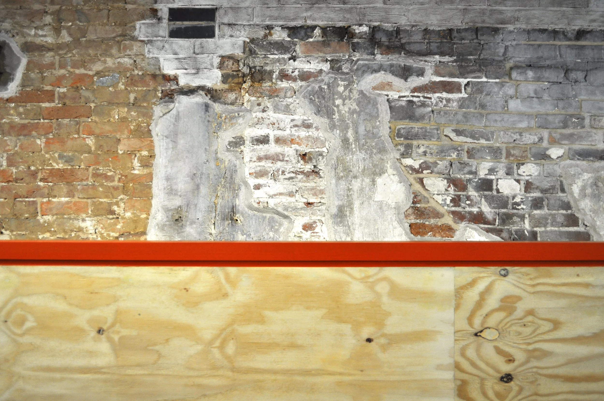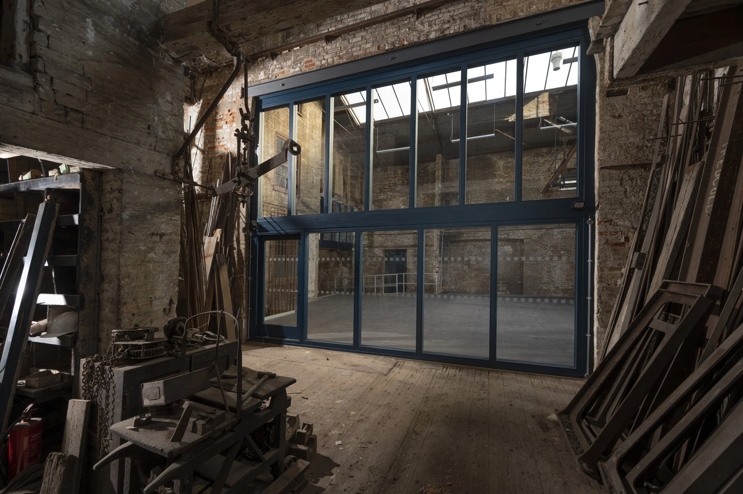 The project has seen the warehouse spaces conserved and sensitively remodelled to create a multi-use activities and meeting space, reception, accessible WC facilities, and mezzanine meeting room. The light touch approach to the design retains the historic fabric and essential character of the building while marking out the interventions as being new and of their own time, creating a new layer of history. Repairs were kept to a minimum and focused on consolidation and stabilisation retaining existing fixtures and fittings where possible. Bold new interventions were created using simple robust details and materials; exposed plywood walls, painted timber screens and key clamp handrails and guarding. A new raised floor provides a surface suitable for group use whilst preserving the historic floorboards below. A new glazed screen provides separation from but also a view through to the un-renovated spaces, revealing the original ironmongers equipment and stock metal. The result is not necessarily ‘quiet’, but it is mannerly, retaining the essential character of the building and responding to present day needs in the architectural language of its time.